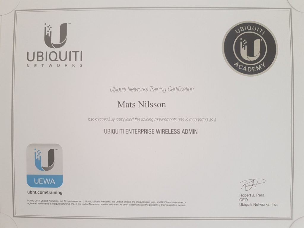 Vi har arbetat med Ubiquiti´s lösningar sedan 2013 och har genomgått UEWA certifieringsutbildning (Ubiquiti Enterprise Wireless Admin) för att du ska känna dig trygg i ditt val av leverantör.